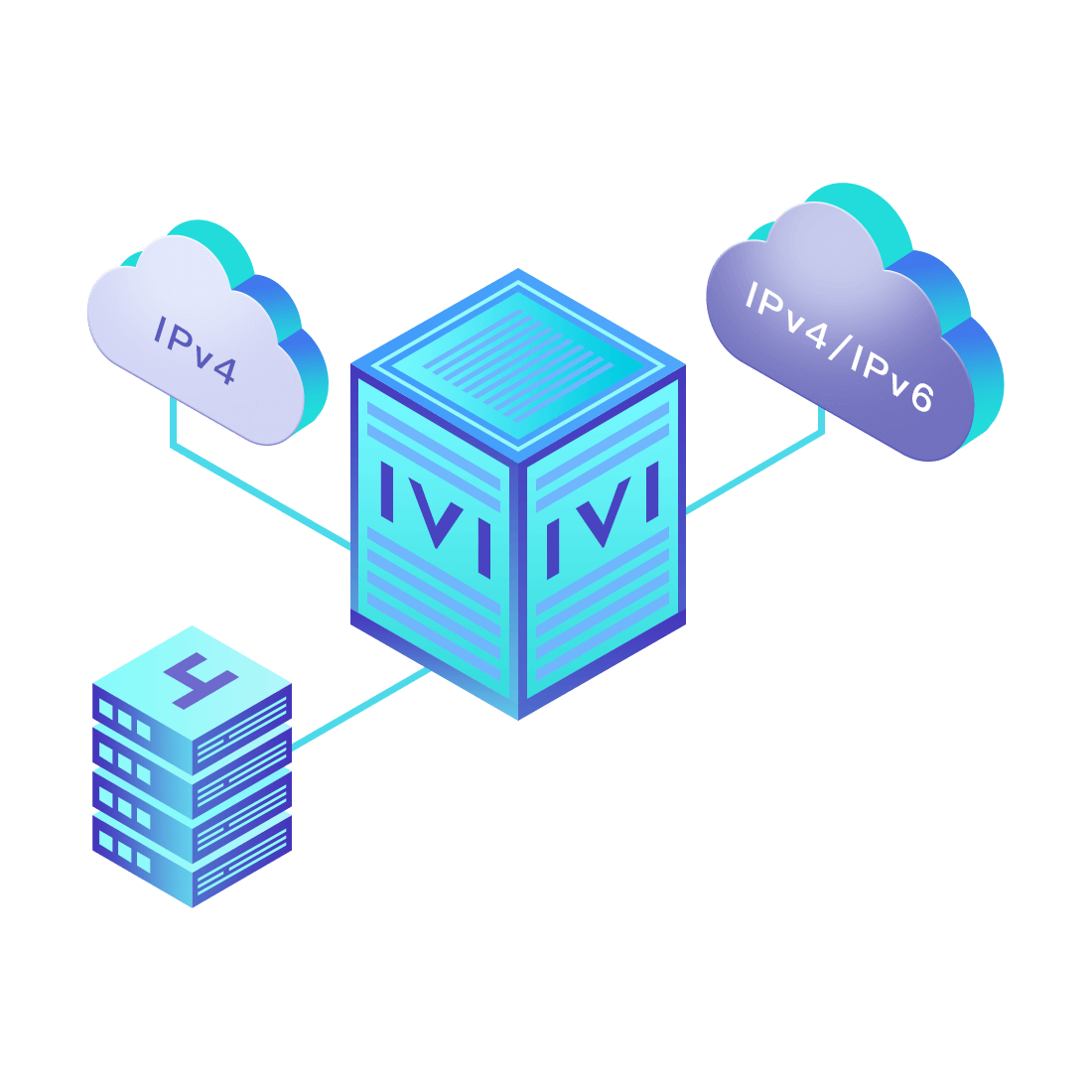 對正在進行IPv6整體升級規(guī)劃的運營商,應用IPv6升級方案2.5,通過IVI無狀態(tài)翻譯技術和純IPv6接入網絡,為雙棧客戶端和雙棧服務器提供連通服務。
